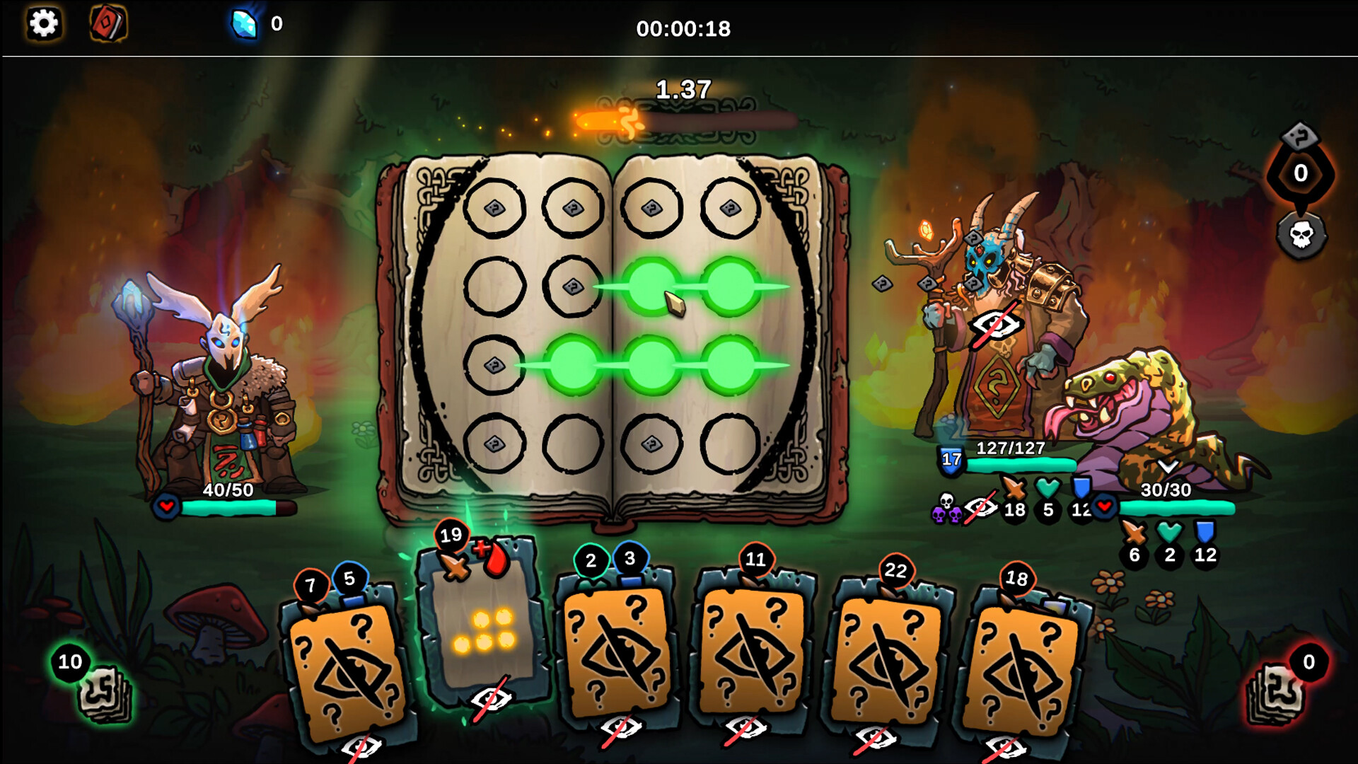 The first roguelike deckbuilder to use player skill as mana. We combined strategy and speed to create a new take on the genre. Can you cast the perfect combination before the clock runs out? Choose your own path and face relentless waves of invaders to defend the sacred oak groves.
