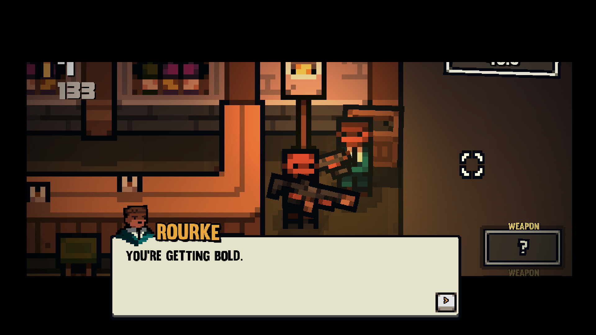 Battle through 5 dangerous areas! From smuggling yards and gambling dens to moving trains. Each location contains unique enemies, hazards, and bosses. Levels are semi-randomized, with handcrafted rooms arranged differently every run for endless replayability.
