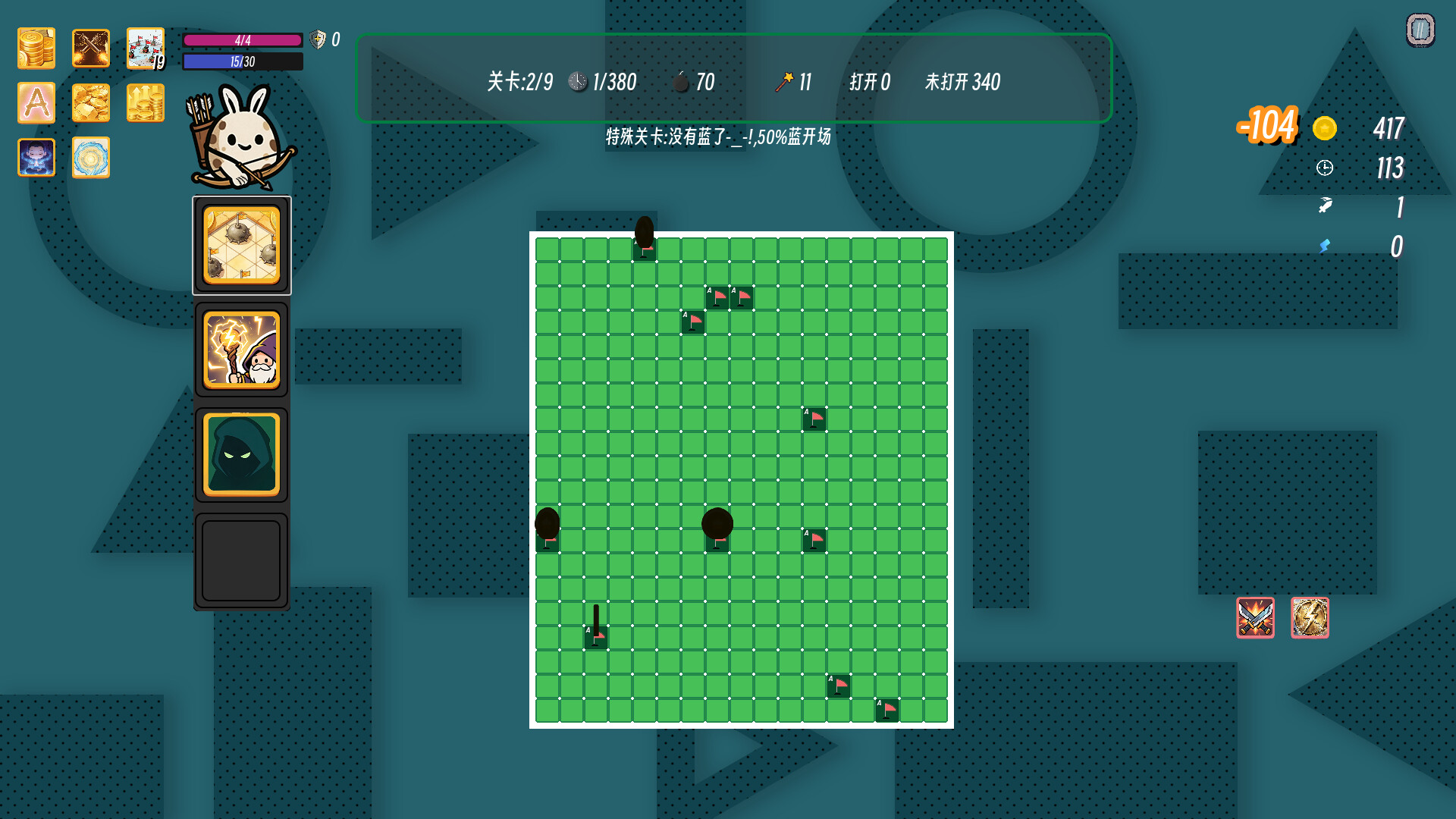 Choose different characters, combine various skills, and quickly complete challenging minesweeper levels. Features classic minesweeper, standard roguelike gameplay, and challenge mode. With 4 characters and over 100 skills.